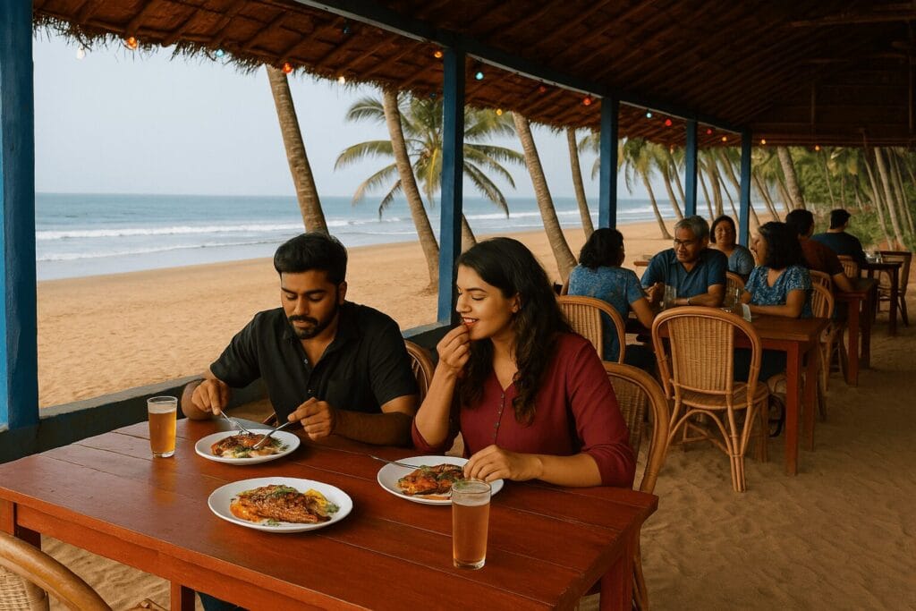 After playing in the water, how about some delicious local seafood or sipping chilled drinks at beachside cafes? Kannur beaches have cozy eateries serving fresh fish, crispy snacks, and cool coconut drinks—perfect for refueling while soaking in ocean views.
